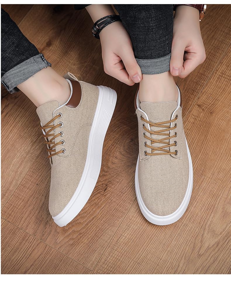 More information about Men's Sports Shoes, Casual lace-up high-top Sneakers, Featuring a Thick Sole, Breathable Fabric Upper, Round Toe Design, and a pleasant Shoe Style Suitable for entire Seasons to wear.