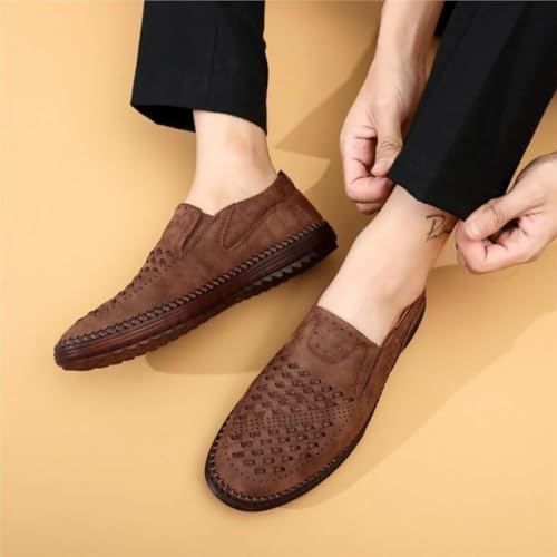 Men's Slip-On Orthopedic Leather Dress Loafers, Hand-Stitched Leather Driving Shoes,Men's Non-Slip Flat Breathable Business Casual Arch Support Loafers 6