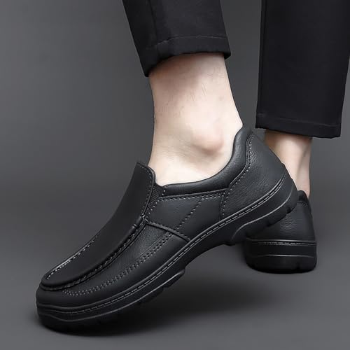 Sole material: RubberOuter material: LeatherClosure type: Pull-OnCAREFULLY DESIGNED: The upper of men's casual loafers adopts a timeless wide round toe and double-row stitching to prevent cracking and deformation. Its unique design provides you with a sense of fashion and luxury, making you more eye-catching.BREATHABLE UPPER: Men's casual loafers are made of high-quality and comfortable EVA material, which conforms to the natural contour of the foot, and the skin-friendly microfiber inner pad material provides excellent comfort and ventilation, bringing lasting comfort to your feet.EASY TO PUT ON AND TAKE OFF: This pair of men's casual leather shoes features a convenient slip-on design that allows you to put on and take off easily, saving your time, while the smooth upper makes these shoes easy to wipe and care for.COMFORTABLE SOLE: Made of lightweight and comfortable EVA material, designed for you, with excellent cushioning and comfort, the soft insole relieves foot fatigue and allows you to feel comfortable all day, while providing maximum breathability, reducing sweating and odor.SUITABLE FOR ANY OCCASION: Men's casual shoes can easily adapt to different seasons, can complement any outfit, and are suitable for any formal or casual occasions, such as office, party and meeting, etc., and will immediately become your first choice for fashionable casual shoes. Perfect for everyday use. High quality materials and excellent craftsmanship ensure long-lasting durability.