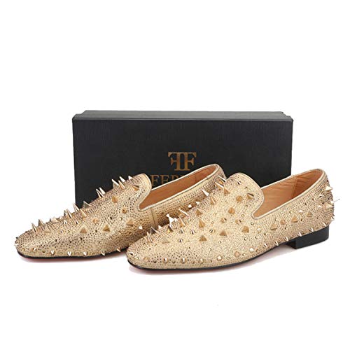 FERUCCI Men Gold Spikes Slippers Loafers Flat with Crystal GZ Rhinestone 5