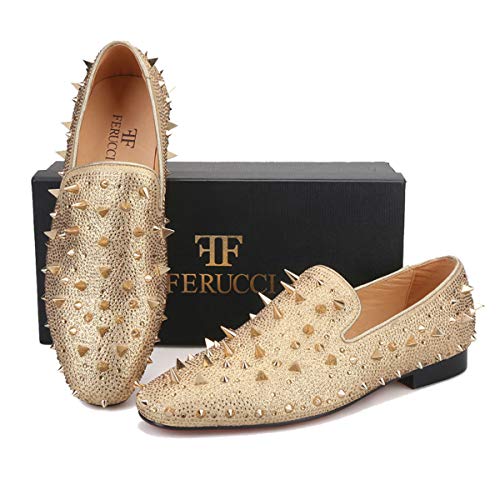must-have ! FERUCCI Men Gold Spikes Slippers Loafers Flat with Crystal GZ Rhinestone