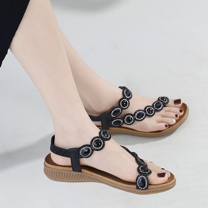 must-have ! Summer Sandals for Women, Bohemian Beach Fashion Round Toe Crystal Floral Bunion Shoe for Women, Elastic Ankle Strap Open Toe Travel Shoes, for Outdoor Hiking Walking Beach