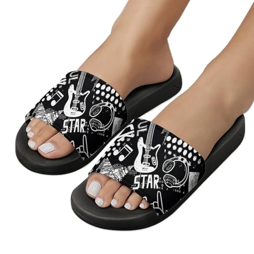 Grunge Rock Music with Guitar PVC Slippers Sandals for Women Men Open Toe Soft Cushioned Non-Slip Sandal for Indoor Outdoor 6