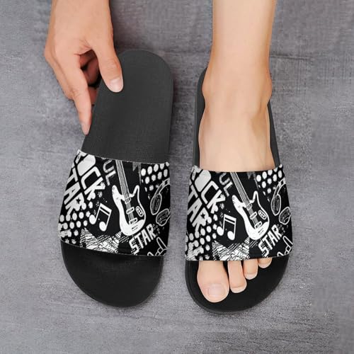 must-have ! Grunge Rock Music with Guitar PVC Slippers Sandals for Women Men Open Toe plush Cushioned Non-Slip Sandal for Indoor Outdoor